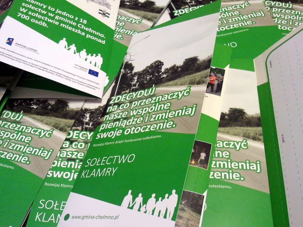 Dzięki inicjatywie Gminy Chełmno – do każdego z mieszkańców wsi trafi specjalna broszura, która nie tylko wyjaśni, czym jest fundusz sołecki, ale także pokaże dotychczasowe jego realizacje i pomysły na kolejne inicjatywy. Dzięki swojej formie broszura zachęca mieszkańców do składania własnych propozycji dotyczących potrzebnych działań we wsi na długo przed spotkaniem sołeckim.